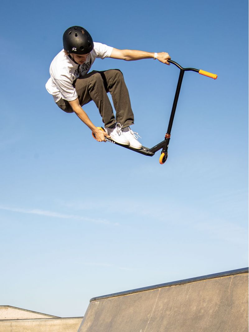 Astuce : pour une pratique parfaite le guidon doit être à la hauteur ou légèrement au-dessus du nombril lorsque l'on est debout sur la trottinette freestyle. Hauteur totale de la trottinette : 79 cm - Hauteur du guidon depuis le deck : 75 cm.