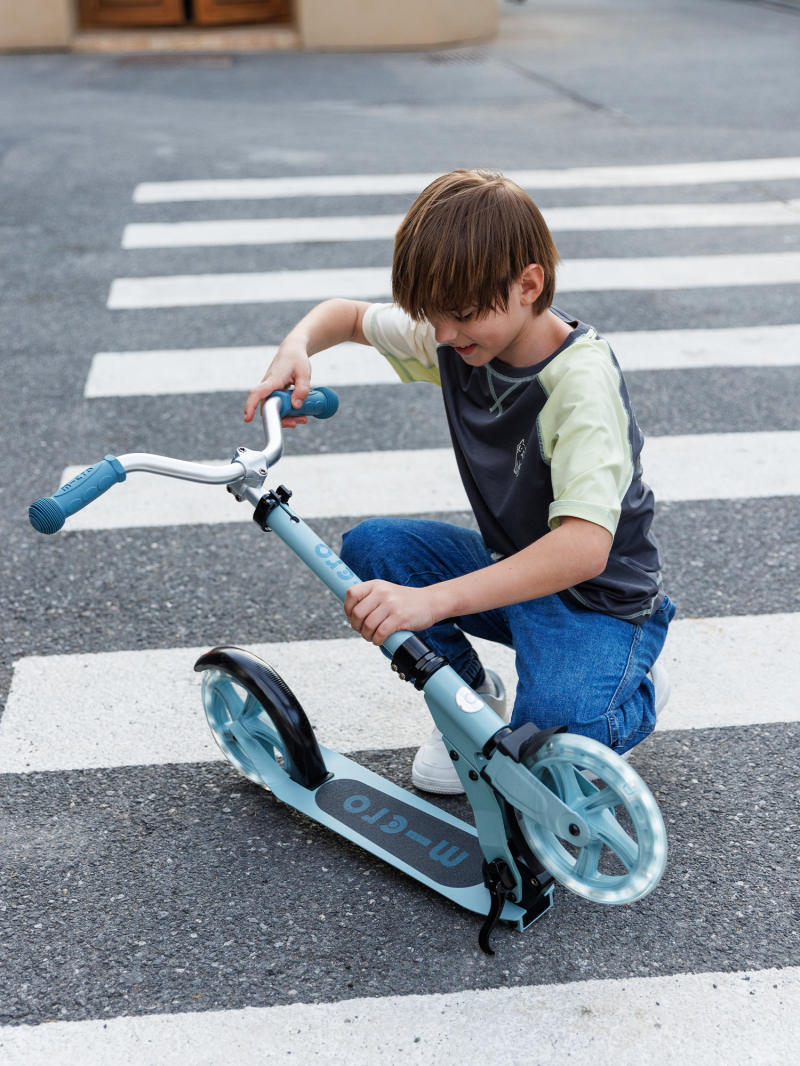 La Micro Cruiser Bleu Glacier LED est une trottinette enfant avec des grandes roues. Ces roues de 200 mm apportent une grande stabilité et un confort de glisse lors des sorties de votre enfant.