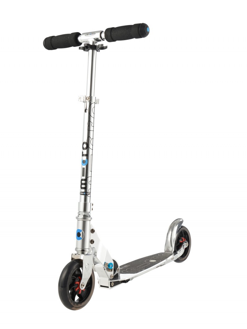 Micro Speed + : cette trottinette est équipée d’absorbeurs de chocs dans les roues, la planche est très base. Cela apporte un confort supplémentaire et demande moins d’efforts.