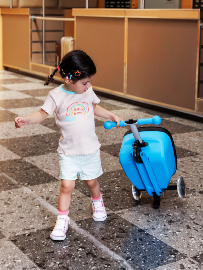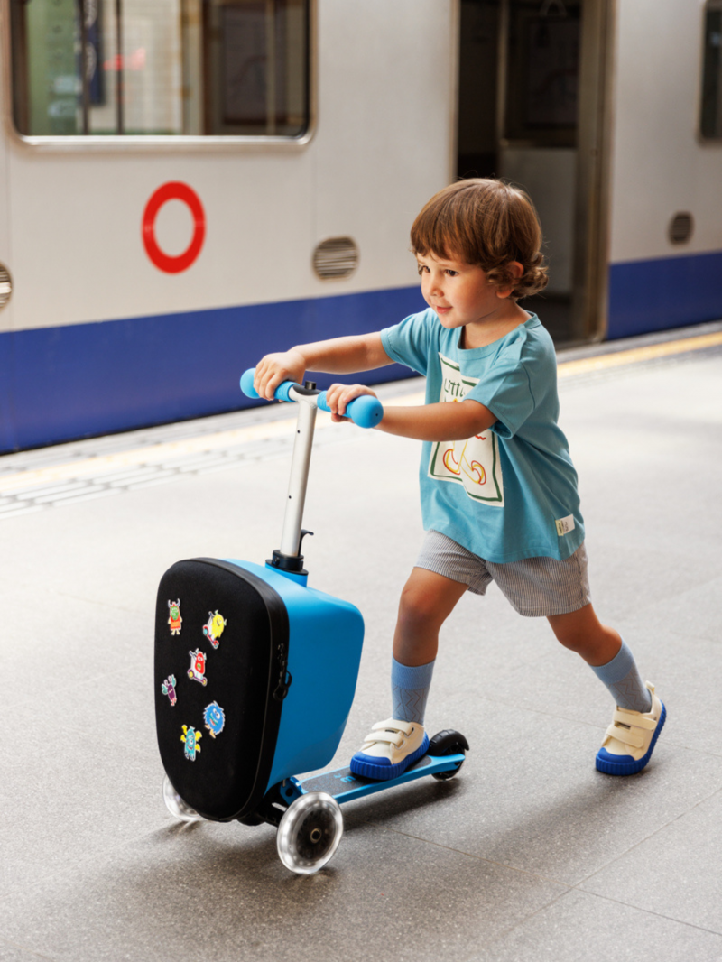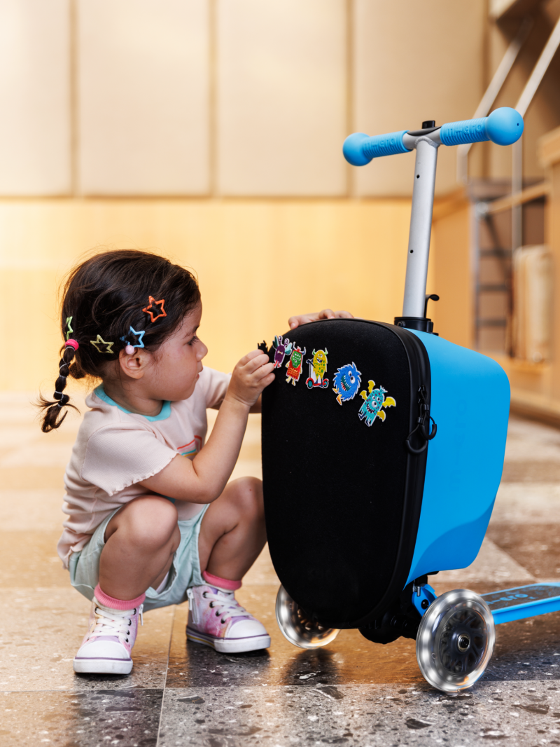 Voyagez sans contrainte avec votre enfant avec la nouvelle trottinette-valise Micro Luggage Junior Patch & Play !