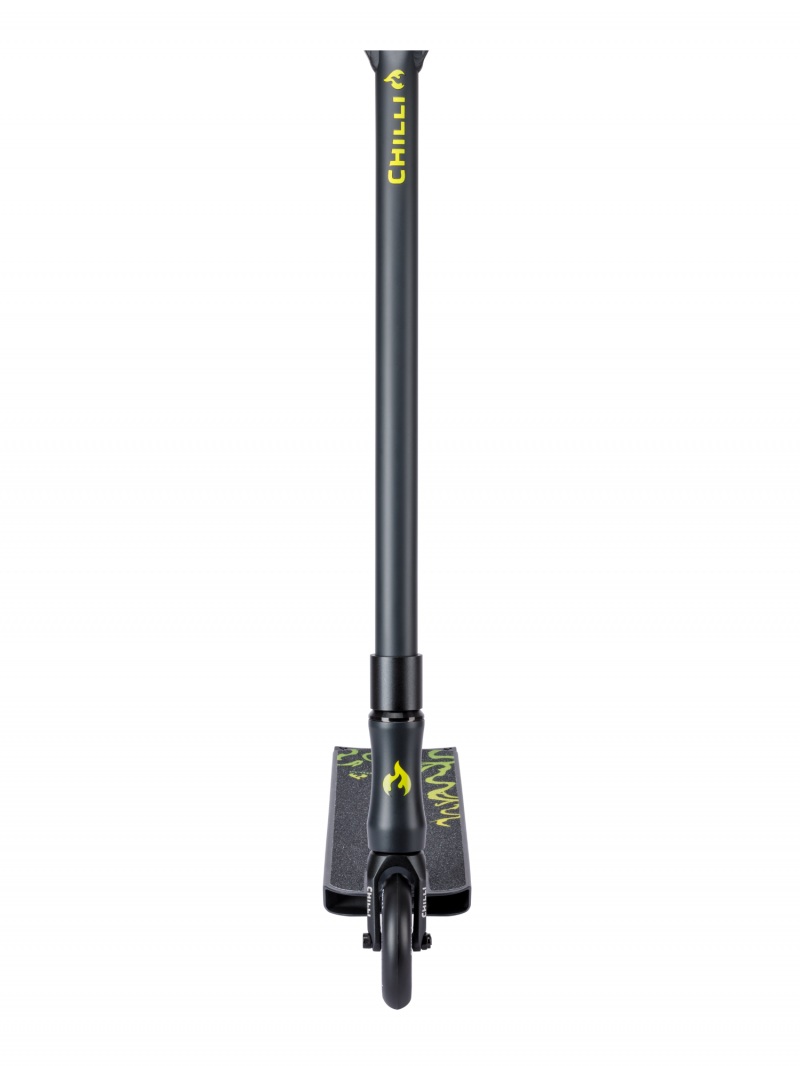Sa T-bar en aluminium ultraléger renforcée par un traitement thermique assure une maniabilité instantanée, tandis que la technologie Devil’s Wings du deck de 12,5 cm de large offre stabilité et légèreté, idéale pour enchaîner tricks et atterrissages avec confiance. Les Morphing Handlegrips épousent parfaitement la forme de tes mains pour une prise en main parfaite à chaque run.