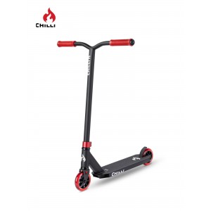 La Chilli Base est le modèle idéal pour débuter, équipé des meilleurs matériaux à un prix imbattable. Le plateau de 50 cm de long et 11,5 cm de large offre suffisamment d'espace pour une position stable. La fixation en aluminium à 2 boulons est assortie aux roues et aux poignées de 110 mm, ce qui confère à la trottinette un look simple mais élégant. Afin de réduire au maximum son poids, ce modèle utilise un système de compression HIC universel. Elle offre aux débutants la possibilité d'essayer leur première trottinette freestyle sans compromettre la qualité ou la sécurité.