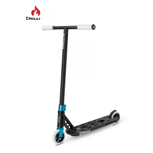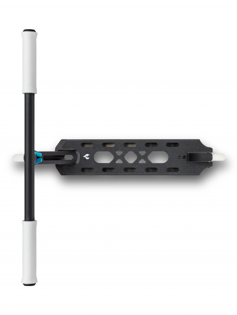 Son T-bar en CrMo blanc ultraléger et son deck cut-out de 11,5 cm avec croix de renfort assurent un contrôle total et des réceptions stables, même après les tricks les plus engagés. Les roues aluminium Core de 110 mm équipées de roulements ABEC 9 garantissent une glisse fluide et rapide, idéale pour enchaîner les runs sans perte de vitesse.