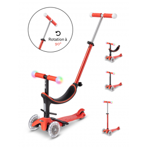 Les trottinettes Mini Micro 3-en-1 grandissent avec votre enfant. Utilisée dans un premier temps comme un porteur (le siège se règle en hauteur), vouspourrez pousser votre enfant avec la barre de poussée télescopique et amovible. En grandissant vous pourrez retirer le siège et votre enfant commencera à appréhender l’utilisation de sa trottinette. Pour finir vous pourrez installer la barre en T.