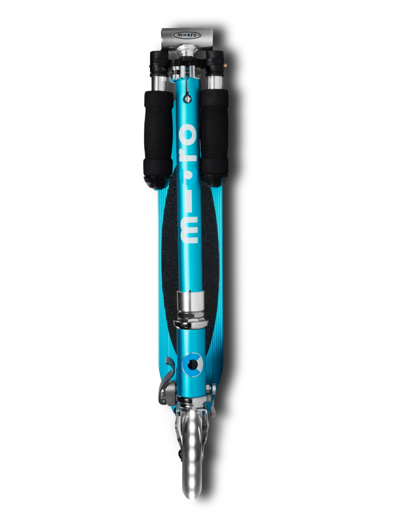 La parfaite trottinette 2 roues compacte, la Micro Sprite Bleu Océan en version lumineuse !