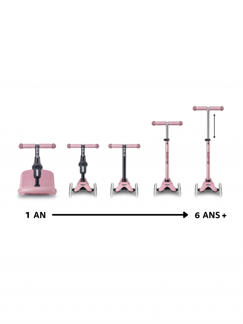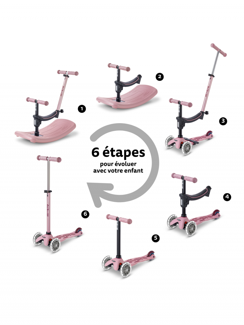Trottinette évolutive Mini Micro Rock & Go Rose Poudré LED - Presque Parfaits