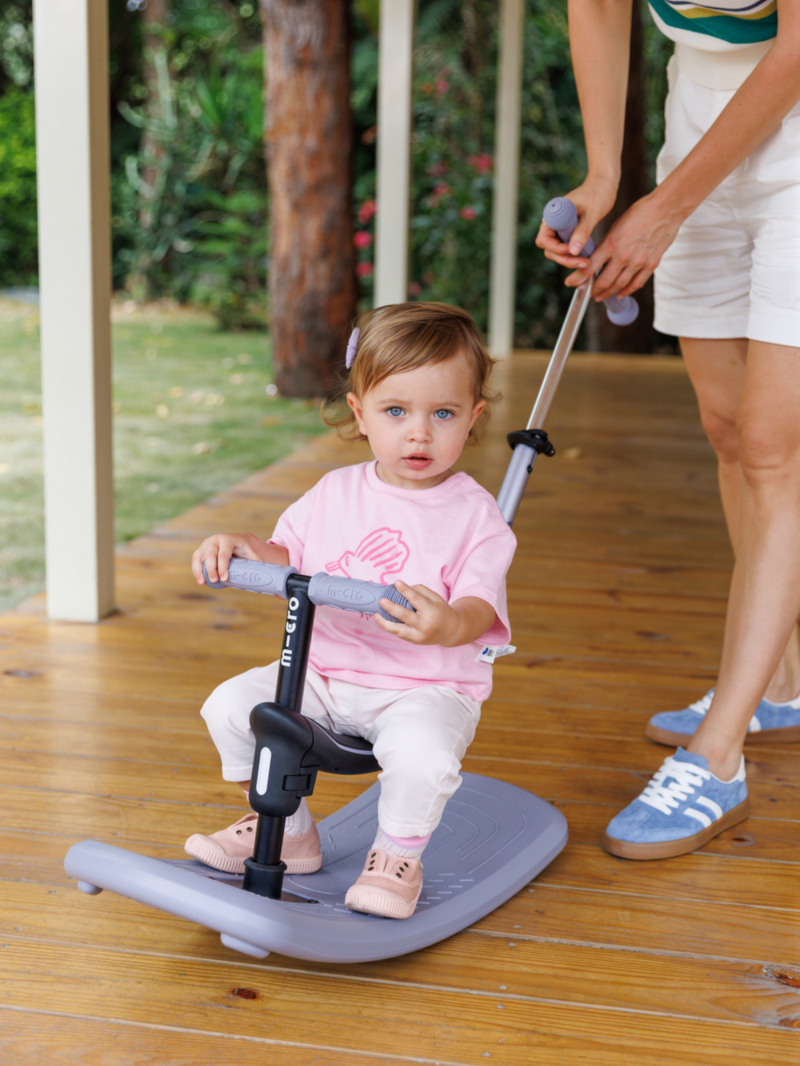 Les trottinettes Mini Micro 3-en-1 grandissent avec votre enfant. Utilisée dans un premier temps comme un porteur (le siège se règle en hauteur), vouspourrez pousser votre enfant avec la barre de poussée télescopique et amovible. En grandissant vous pourrez retirer le siège et votre enfant commencera à appréhender l’utilisation de sa trottinette. Pour finir vous pourrez installer la barre en T.