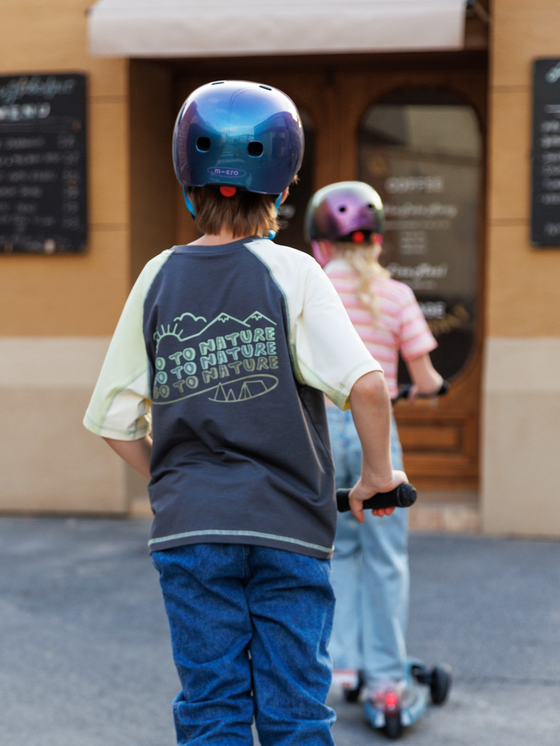 IMPORTANT : habituez vos enfants à porter un casque dès qu’ils commencent à utiliser leur trottinette, et ne faites pas d’exception : pas de casque, pas de trottinette ! Les bonnes habitudes se prennent tout petit !