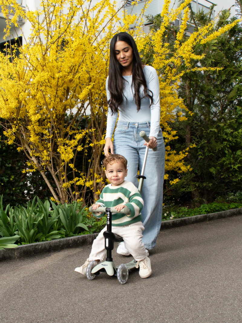 A savoir : Nous ne recommandons pas l’utilisation de la barre de poussée sur la Mini Micro 3-en-1 Sporty, car la direction de cette trottinette est très souple.