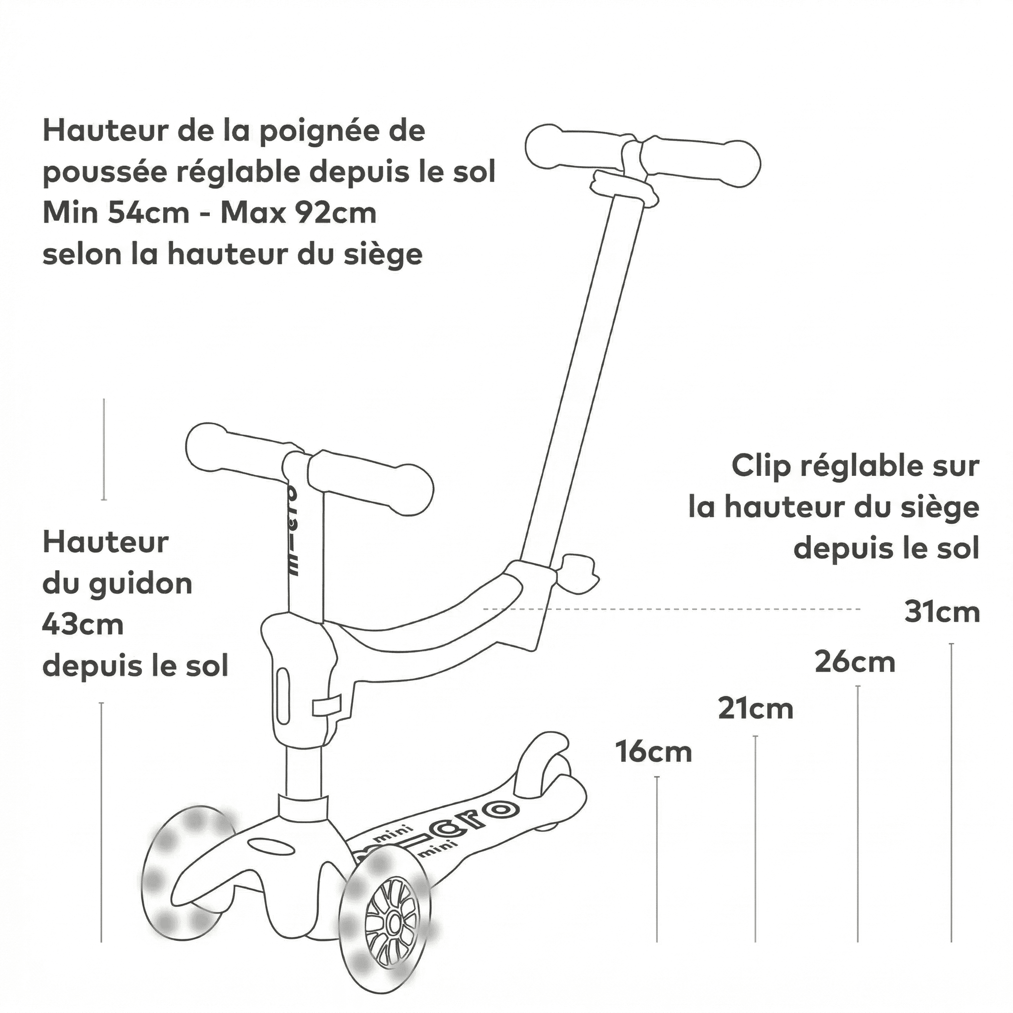 • Apprentissage de l'équilibre : Une fois le siège retiré, l'enfant découvre les sensations de glisse debout, tout en profitant de la stabilité légendaire des trois roues Micro.