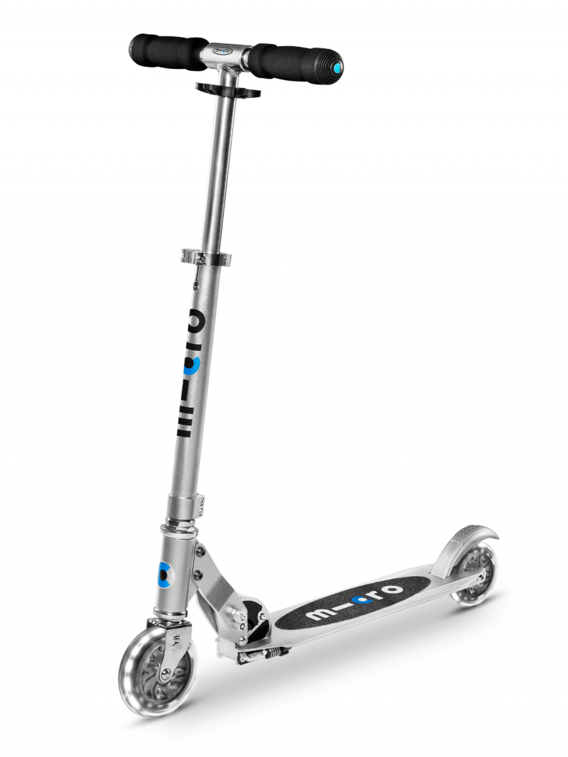 La Micro Sprite est LA trottinette idéale pour les juniors et ados adeptes des trottinettes 2 roues ! Le gros plus de la trottinette : ses roues lumineuses et sa couleur aluminium !