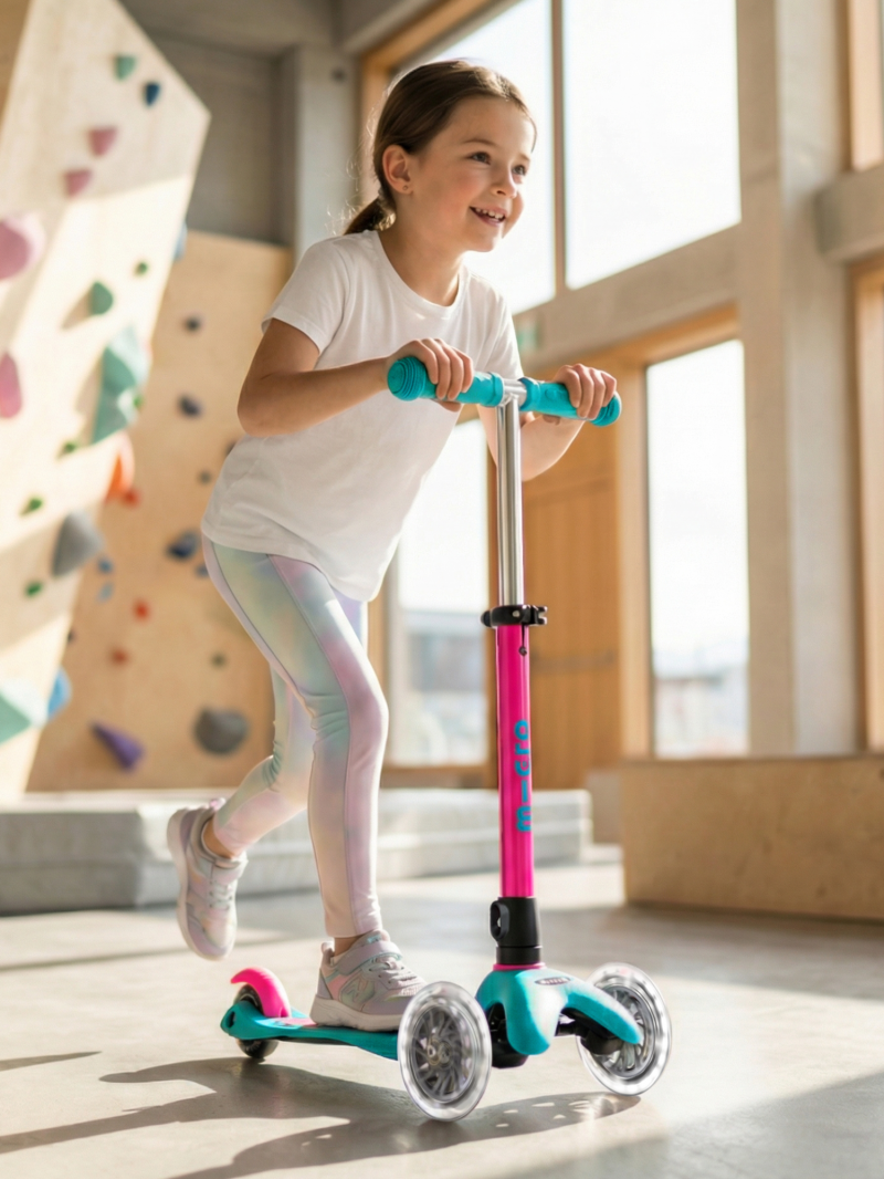 Après le succès de la Maxi, la gamme se décline désormais pour les plus petits avec la Mini Micro Néon. Ce modèle est spécifiquement recommandé pour les enfants de 2 à 5 ans, offrant une transition naturelle vers la mobilité autonome.