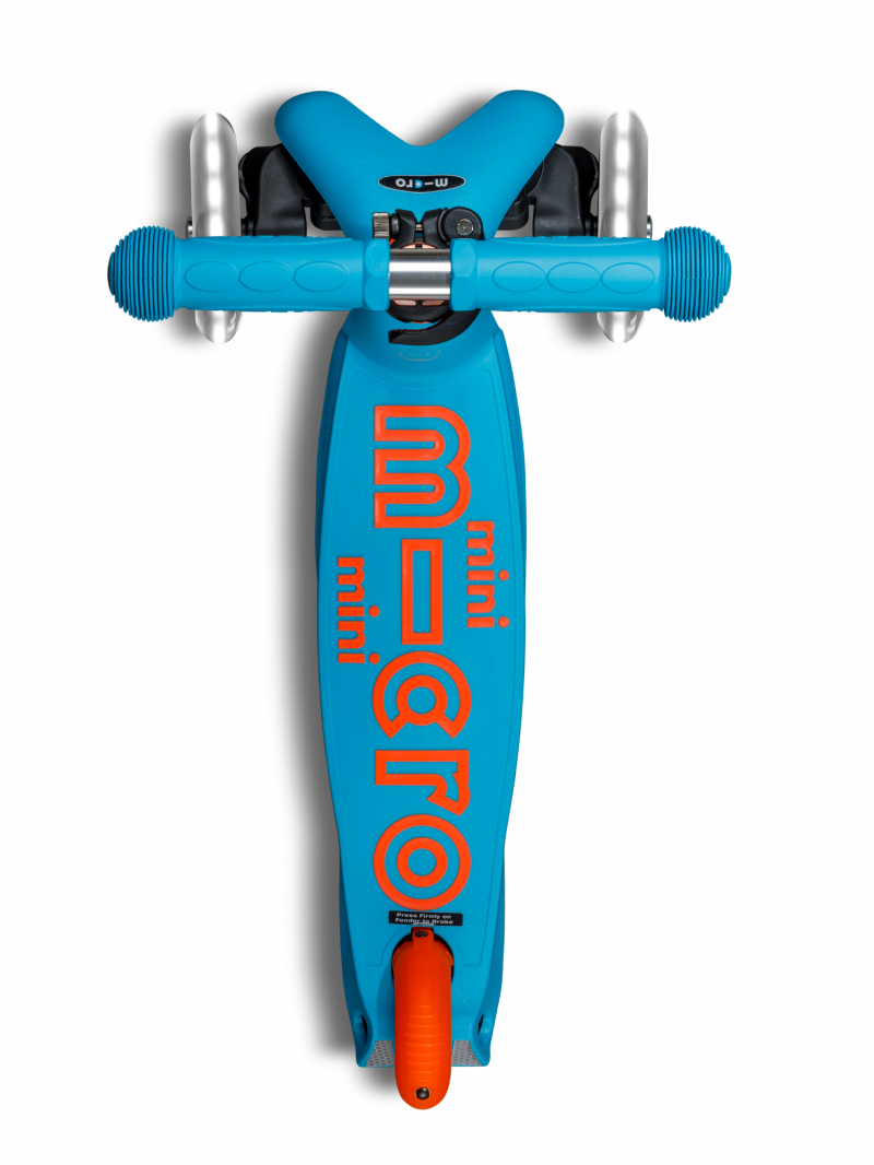 La trottinette 3 roues Mini Micro au design flashy, désormais dotée d'un système de guidon amovible sécurisé pour les 2-5 ans.